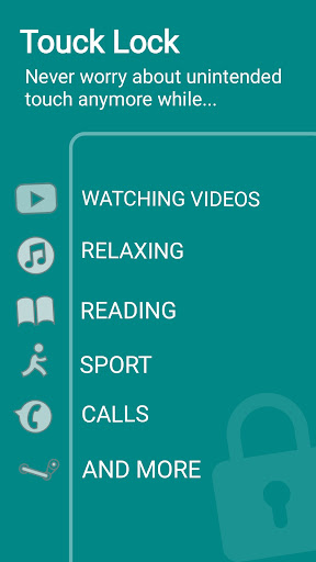 Touch Lock helps you to disable your mobile touch screen or parts of it while listening music or watching videos. Touch Lock is a touch disabling app to prevent unintended operations on the touch screen.