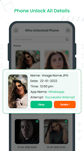 If someone tries to open locked apps with the wrong password, Lock Screen - Time Password will capture the picture of the intruder from the front camera and show you when you open Lock Screen - Time Password and also will capture the picture if you will enable successful attempts.