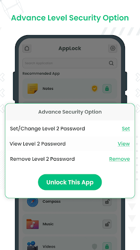 You can also add extra security levels to the locked app because we provided an advanced lock system with the help of the Lock Screen - Time Password, You will be able to set different passcode/patterns to a different applications. So if someone knows your one application’s password, they will access only that particular application, not others, because other applications will have different passcode/patterns.