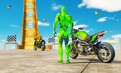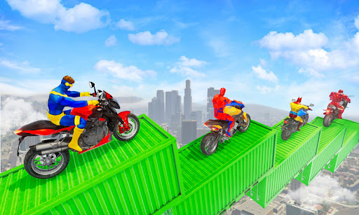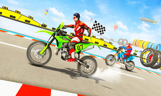 Super Bike stunt games 3d have a lot fun for players who want to become real bike stunt racer. Take part in rider bike racing which enables you to learn stunt bike freestyle. Superhero Ramp bike racing game offers amuse, high jumps and stunt challenges. Flips on mountain, turns, steep roads and amazing stunts make real bike racing games only one of its kind. Rider bike racing game is free mobile game. Make racing stunt game part of your android smartphone and enjoy endless thrill.