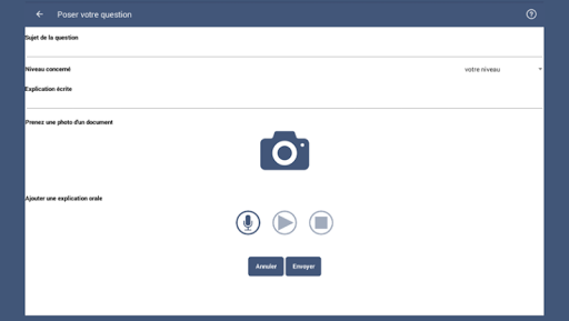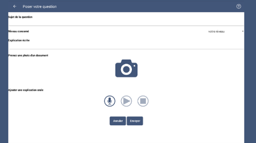 التطبيق يتضمن وحدة مساعدة عبر الإنترنت لطرح أسئلة السيد Mercier. تكتب على ورقة العناصر اللازمة، يمكنك التقاط الصورة، تترك رسالة صوتية وإرسالها إليك. بعض الوقت بعد، لديك إشعار على هاتفك المحمول ويمكنك التحقق من الإجابة. يمكن أن تستمر التبادلات بالطبع حتى الدقة الكاملة للسؤال.
