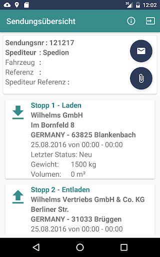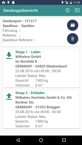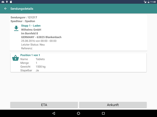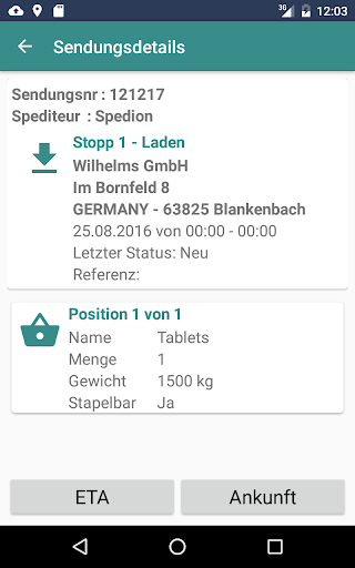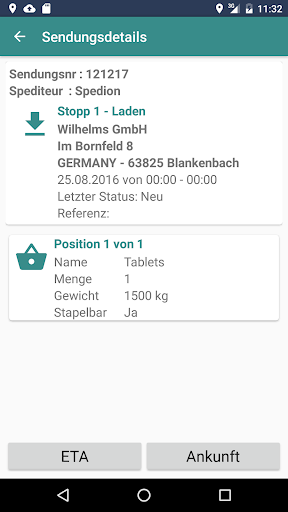 • Statusmeldungen: Ankunft, Beladen Beginn, Beladen Ende, Abfahrt, Entladen Beginn, Entladen Ende