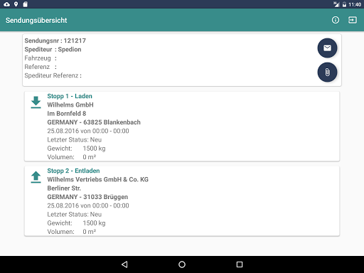 • Auf der eConnect-Plattform wird ein Auftrag generiert, der eine fünfstellige Auftragsnummer erhält. Diese Tour wird dem Fahrer oder Disponenten per SMS oder E-Mail übermittelt.