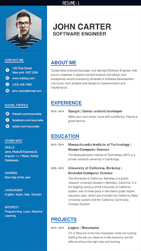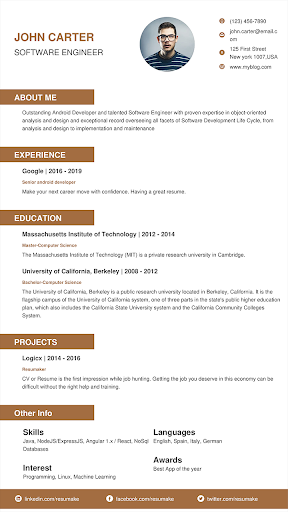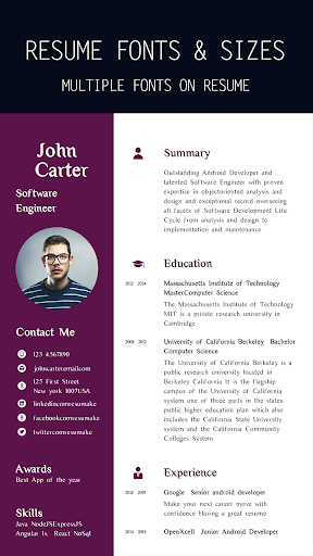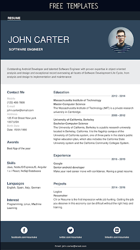 This my resume free app build resume / best resume creator can be used to create/make a resume CV design, Curriculum vitae, Professional resumes, perfect resumes.