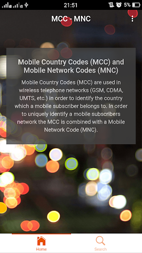 The MCC-MNC [Mobile Country Codes (MCC) and Mobile Network Codes (MNC)] application is fast, easy to use: