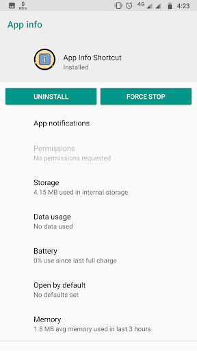 This app is like a Shortcut and it will take you directly to app info. part of any installed app in one click. Now you don't have to browse in the settings.