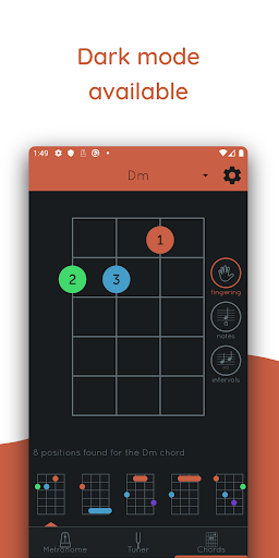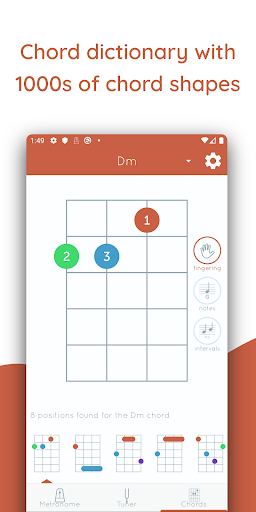 The metronome will allow you to keep time with professional precision. Choose any tempo of your liking, adjust the number of beats as well as subdivisions and just hit play. It’s a perfect companion to practice ukulele, whether you want to learn songs or are just going through your daily exercises. You can also have the metronome running in the background while you’re using other apps, and keep control over it thanks to a handy notification.