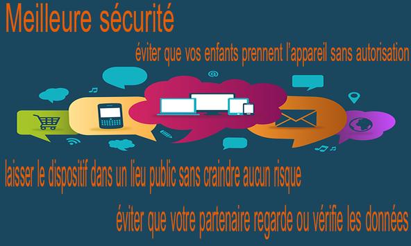 Cette application pourrait être exploitée dans plusieurs cas : (1) éviter que vos enfants prennent l’appareil sans autorisation ; (2) laisser le dispositif dans un lieu public sans craindre aucun risque ; (3) éviter que votre partenaire regarde ou vérifie les données de votre appareil (parfois cela peut arriver et surtout l’histoire des couples ;)).