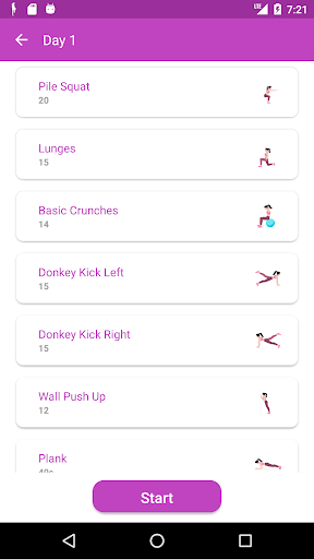 The workout plan contains arm, butt, abdominal and leg workouts to help you lose your extra weight and shape your body. With animations you can make sure you use the right form during every exercise. You can easily do your workouts at home or anywhere at any time and for free.
