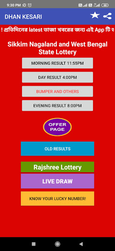 DhanKesari - धन केसरी Lottery Result App gives you daily lottery result directly in your mobile phone. You can download and view the result without any help of pdf viewer app. Fastest daily results are available. The lottery result app includes the following: