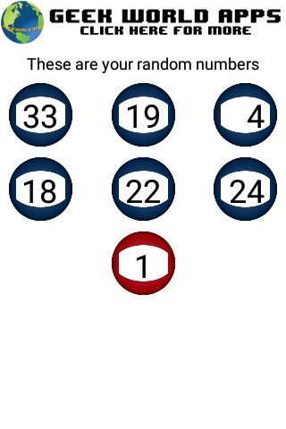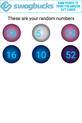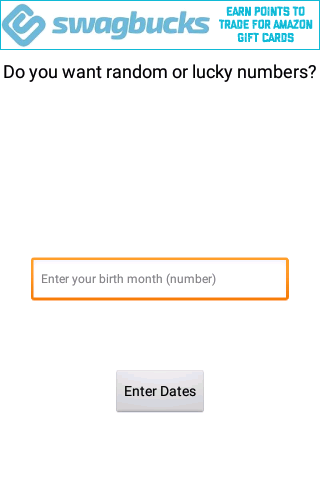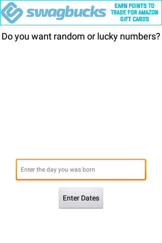 Lucky numbers - This mode will ask you for the day you was born and the month in number form for example 5, 9 (5th of September) and using basic numerology it will pick numbers that are meant to be lucky for you*!