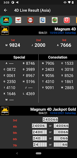 4D Live Result (Asia) - Delivering the latest live 4D result in Asia, including Magnum, Damacai, Toto and more! Download free today!