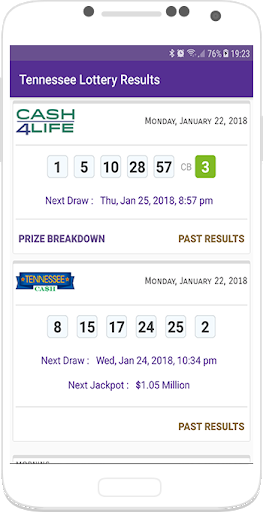 By using the lottery application Tennessee results you can view real-time results of draws for mega millions, powerball, Cash 4 life, Lotto America, Tennessee cash and other games.