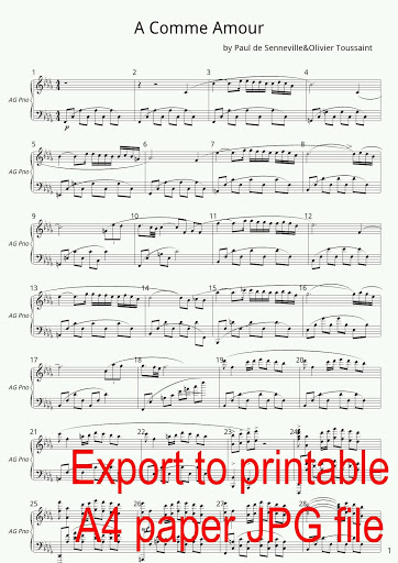 -Share the sheet music or audio you create via email or export to printable A4-paper-sized JPG image file format.