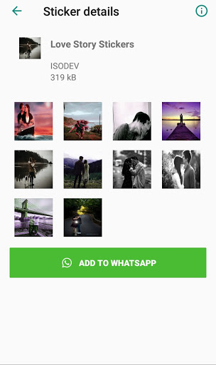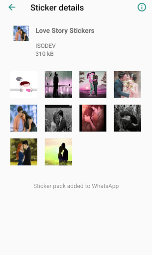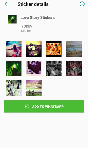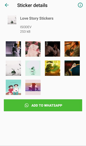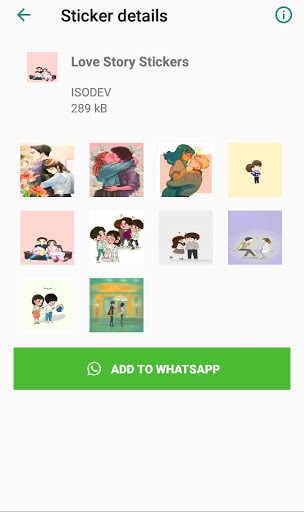 Love Story Stickers for whatssap ¤How to use stickers: 1.Open the App." Love Story Stickers for whatssap" 2.Tap on “ ” and confirm. 3.Or Select a Category and Tap on "Add to Whats App App" 4.Now you can see the stickers.