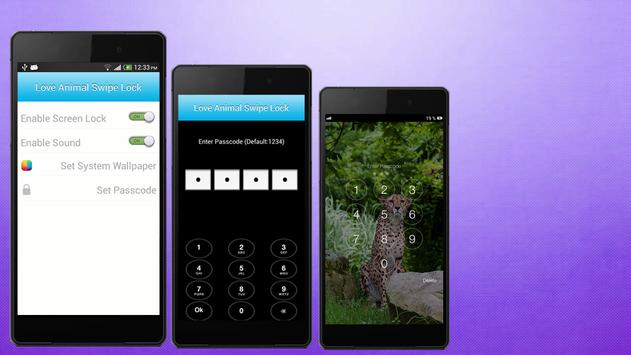 Love Animal Swipe Lock has features to secure your Smartphone with pass code, home button disabled, love animals wallpapers use as backgrounds on lock screen, miscall, signals, battery status