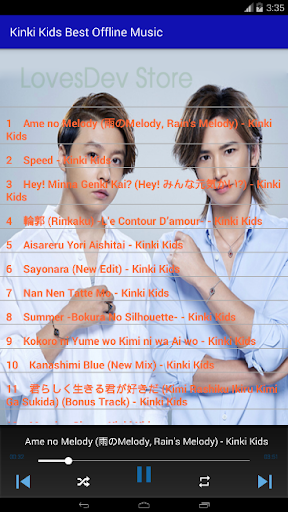 Kinki Kids Best Offline Music today, the most meaningful, vibrant Japanese music app, developed and distributed by LovesDev Store. Application to provide the best experience for users.