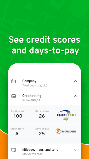 - Truck loads display Credit Scores from Thunder Funding and TransCredit