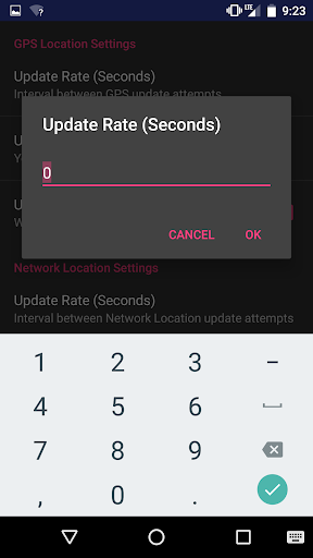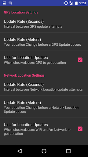 - On some devices, the Network and GPS update rates in seconds may be ignored in favor of the update rate in meters. It tends to happen especially if there is a weak GPS signal.