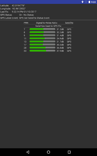 - On some devices, the "Number of GPS Satellites Used in Fix" is 0 or is inaccurate. This number is supposed to be returned from the internal GPS; however not all devices support this.