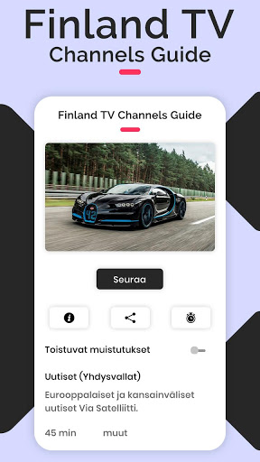 Plan ahead the vision of the programs that you are most interested simply and intuitively with Finland TV Schedules - Live TV All Channels Guide.