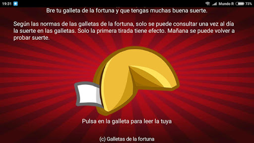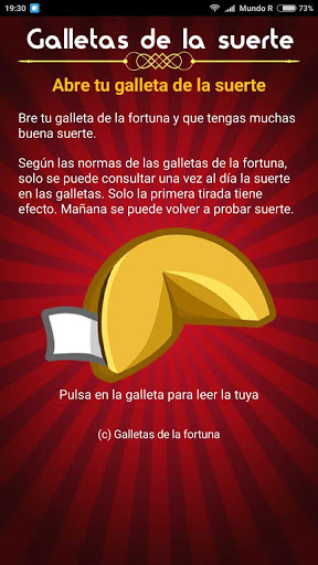 Con nuestra app podrás sacar todos los días una cookie o galleta de la fortuna que te dará la suerte que necesitas para ese día.