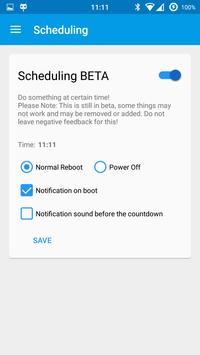 Now you can schedule the automatic shutdown or the automatic reboot of your device at a certain time! There could be some bugs! Report them to me!
