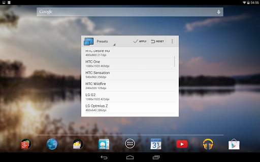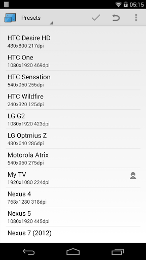 You are developing apps and you want to test your app on different devices? Just use a device preset or create your own one to simulate the screen resolution and density of every possible device.