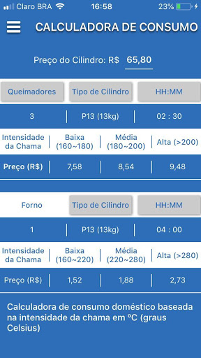 Calcula o custo do gás ao preparar seus alimentos baseado na intensidade da chama