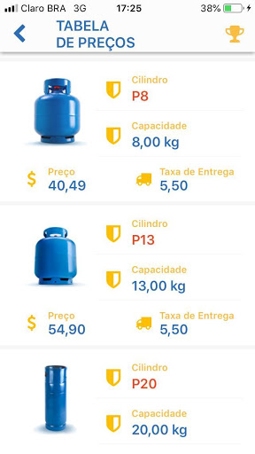 Consulta os tipos de botijões e cilindros disponíveis na Revenda, preços e taxa de entrega;