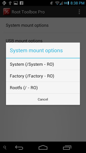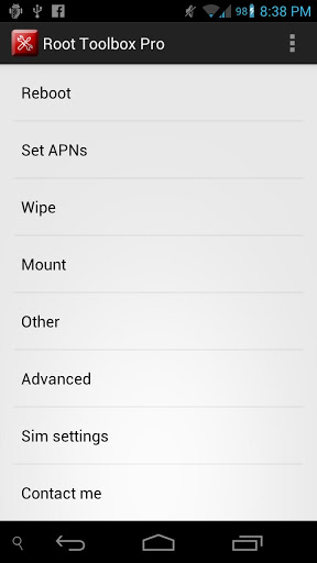I cannot respond to comments so EMAIL MERoot, Busybox and Soff are require to use most features in this app CurrentFeatures:RebootRecoveryBootloaderHotBootDownloadModeSetAPNBackupRestore Wipe Delvik Wipe Battery Stats Remount System BackupRestoreFlashErase Recovery BackupRestoreFlashErase Boot Fix permissions Launch Hidden Menu Fix Market Links Sim Settings Themes chooser optionsRestart Status Bar Dual Mount SdcardSystem App RemoverBackupRestoreEnableDisable Boot AnimationChange boot animationRead LogcatDisplay Device Information Download Update.zip To Change Sdcard Read SpeedWipe All Webview CacheMD5 Sum FixerDebug MessageInstall Cyanogenmod39;s DSP ManagerInstall Jellybean4.2 CameraInstall Jellybean4.2 keyboard All suggestions on features I can add or change to improve this app are always welcome. Please fill free to Email me and ill get back to you as soon as possable.To Help Support The Development Of This App Go To http:lukemovement.wordpress.comThis is a FREE SAMPLE off root toolbox pro, this mean not all features are included.DISCLAIMER: This app is made available for use at your own risk with no warranty of any kind.