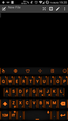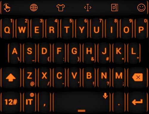 This is a theme with neon orange keys over black background for AnySoftKeyboard application How to use: open application and click the Apply Theme button.
