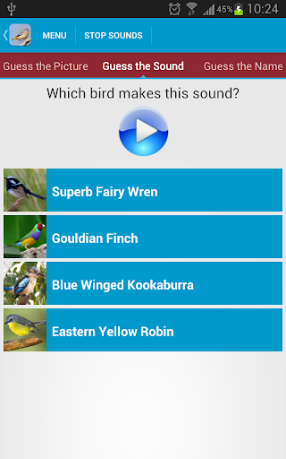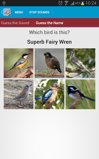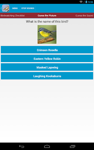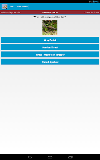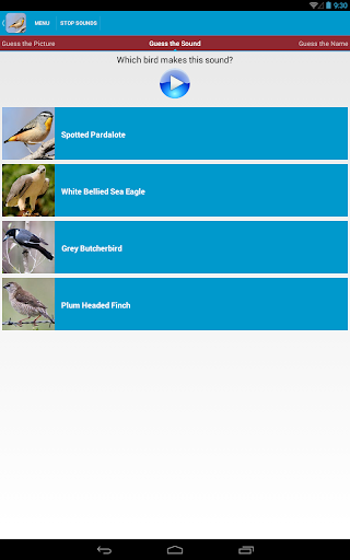 Mini games are also included helping you to learn the different birds found in this app: Guess the Picture, Guess the Sound and Guess the Name.