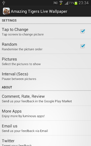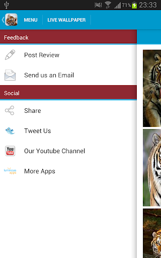 1) Home > Menu > Wallpapers > Live Wallpapers > Amazing Tigers LWP.