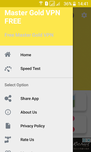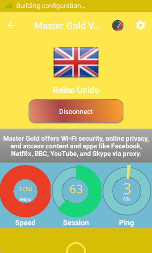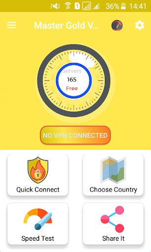 Master Gold VPN FREE is a free VPN application with several countries at your disposal, simple user interface with several features including SpeedTest FREE!