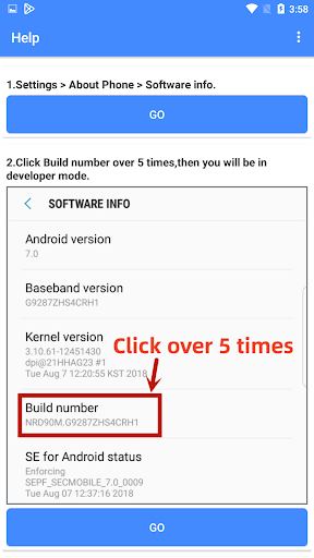 2.Click Build number over 5 times,then you will be in developer mode.