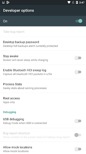 Developer Options Settings feature: