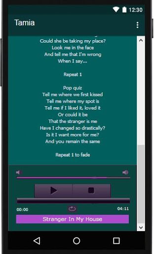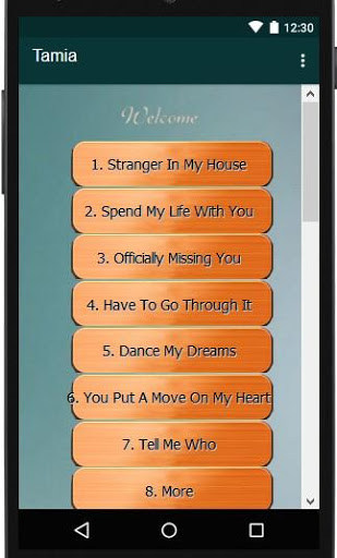 Tamia 25 Top Lyrics Music : 1. Stranger In My House 3. Officially Missing You 5. Dance My Dreams 7. Tell Me Who 9. So Into You 12. Love Me In A Special Way