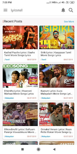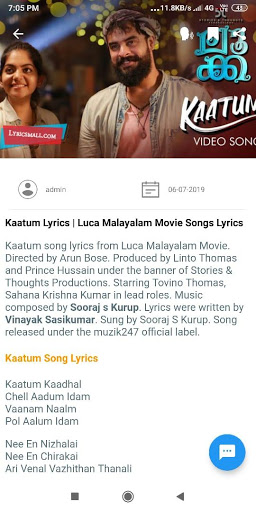 Lyricsmall App Provide Latest Malayalam, Tamil, Hindi Songs Lyrics. If u want a song lyrics just send a mail or comment we update the lyrics as soon as possible.