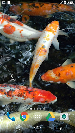 Koi 3D Live Wallpaper - free live wallpaper with parallax effect that simulates water ripples and water drops on the surface.
