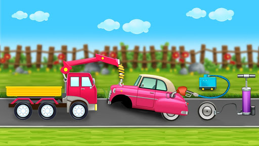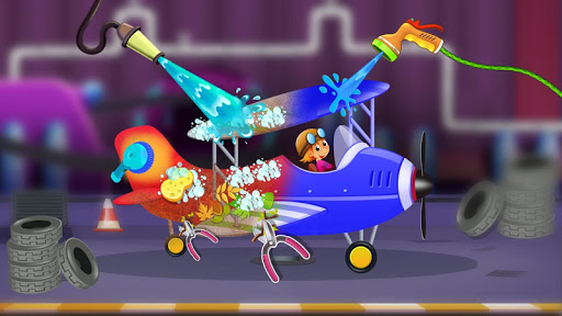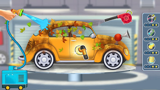 Clean up, wash, fix bugs, color and design the kid’s cars in your auto service garage.