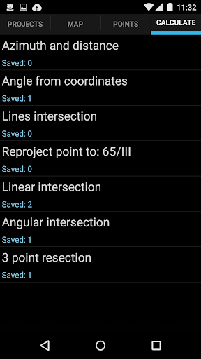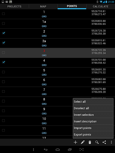 Point from points list can be easy locate on map by long tap on them. You can add points by tap on map or writing their coordinates.