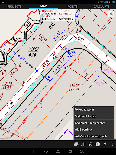 This application allow you to manage points in any coordinate projection (all EPSG defined coordinate systems are supported). Points are painted on map. You can choose from online google maps, any WMS server or use offline solution based on Mapsforge maps (for example from http://www.openandromaps.org/ - please support this great project if you find them useful).