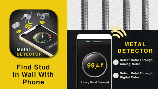 Metal detector and wall stud detector app is an amazing metal stud detecting tool which is freely available on Play store. This is free metal detector app will let you to detect any type of metals, stud, wires, and silver. This new metal stud detector app useful tool uses the magnetic sensor built-in your mobile device and shows magnetic field level in μT (microtesla).