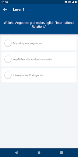 بالإضافة إلى التعلم الكلاسيكي، يتم تقديم مستوى التعلم أيضا. في التعلم على المستوى، يتم تنظيم الأسئلة من قبل النظام في ثلاثة مستويات واستفسار عشوائيا. بين المستويات الفردية هناك استراحة لحفظ المحتوى بأفضل طريقة ممكنة. هذا ضروري لتحقيق اكتساب المعرفة الصديقة والمستدامة في الدماغ. إن الاختبار النهائي يجعل تقدم التعلم مرئيا ويوضح حيث العجز المحتمل، وربما لا يزال التكرار منطقي.