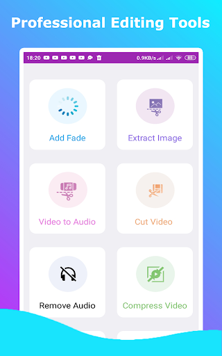 - Edit video with amazing features, like adding fade into video, video to audio, trim video, romove audio into video, cut vid.