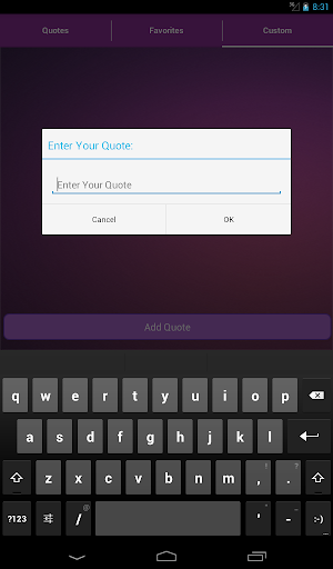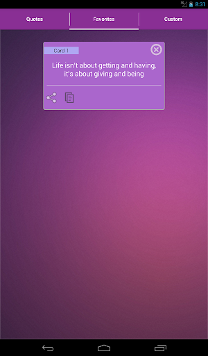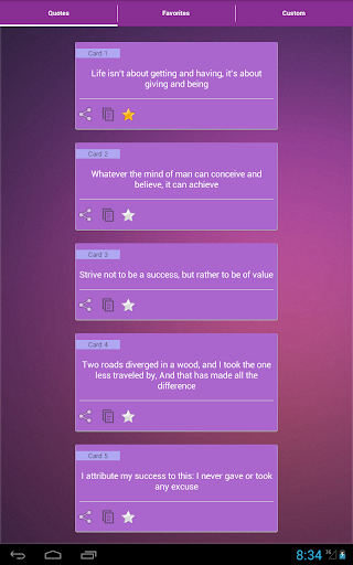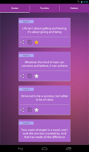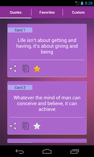 Inspirational Quotes is a collection of the most beautiful quotes that allows you to : 1) set to favorites 2) share 3) add your custom quotes and edit them