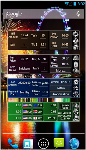 Mad Calculator Widget is a free calculator plus a multi calculator widget that will quickly calculate tips, discounts, home/car and other loans and is also a unit converter and currency converter!