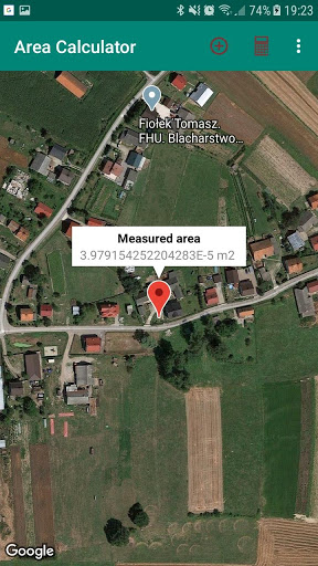 Application measure field surface using GPS data from your phone. Choose first point, press "plus" button stand steady and let your phone estimate your position. When system calculate your position sends notification. Then You can go to another point of your field. Repeat this steps as many times as many