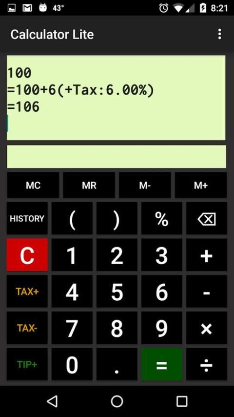 • Four arithmetic operations, percentages,tax,and tip calculations